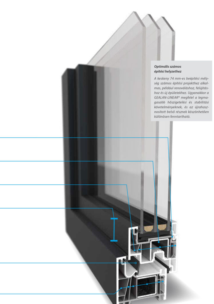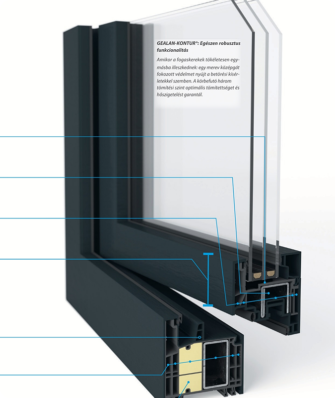 A GEALAN LINEAR és KONTUR rendszerei a modern építészet igényeire szabott, kimagasló műszaki tartalmat és elegáns megjelenést kínálnak. Letisztult, egyenes vonalvezetésű profiljaik több fényt engednek be, miközben hatékony hő- és hangszigetelést biztosítanak, így hozzájárulnak az energiahatékony, kényelmes otthon megteremtéséhez.